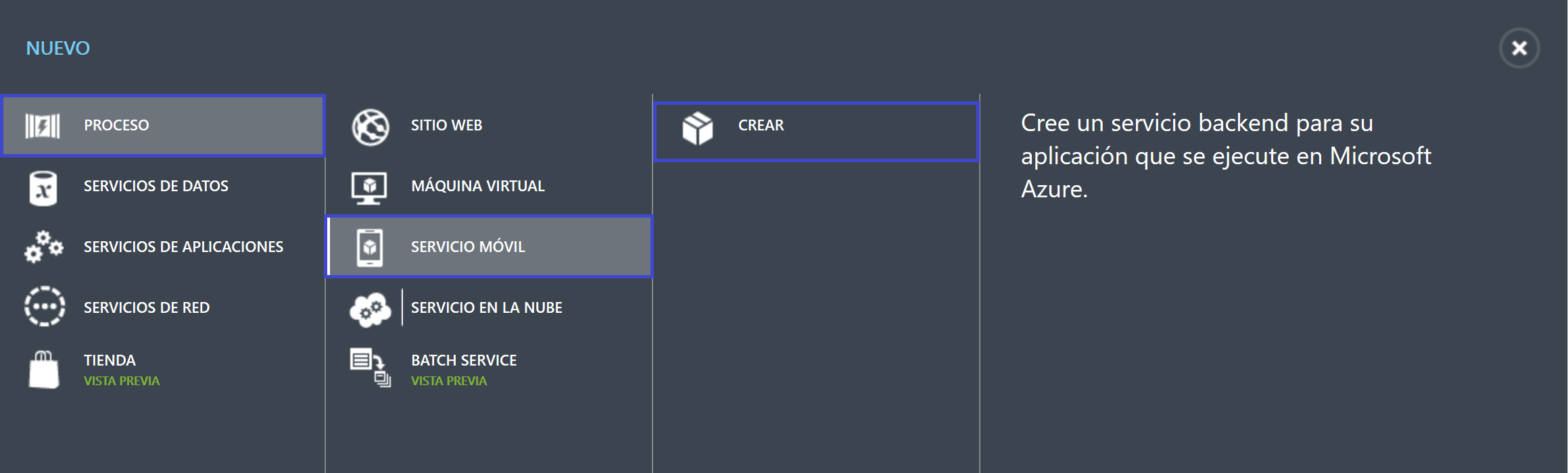 Azure Mobile Services (Servicios Móviles) nos permite crear un backend para nuestras aplicaciones móviles en minutos. Podemos integrar aplicaciones sobre múltiples plataformas: Windows Phone, Windows Store, Android, iOS, Xamarin (iOS y Android), PhoneGap, HTML, Sencha y Appcelerator.