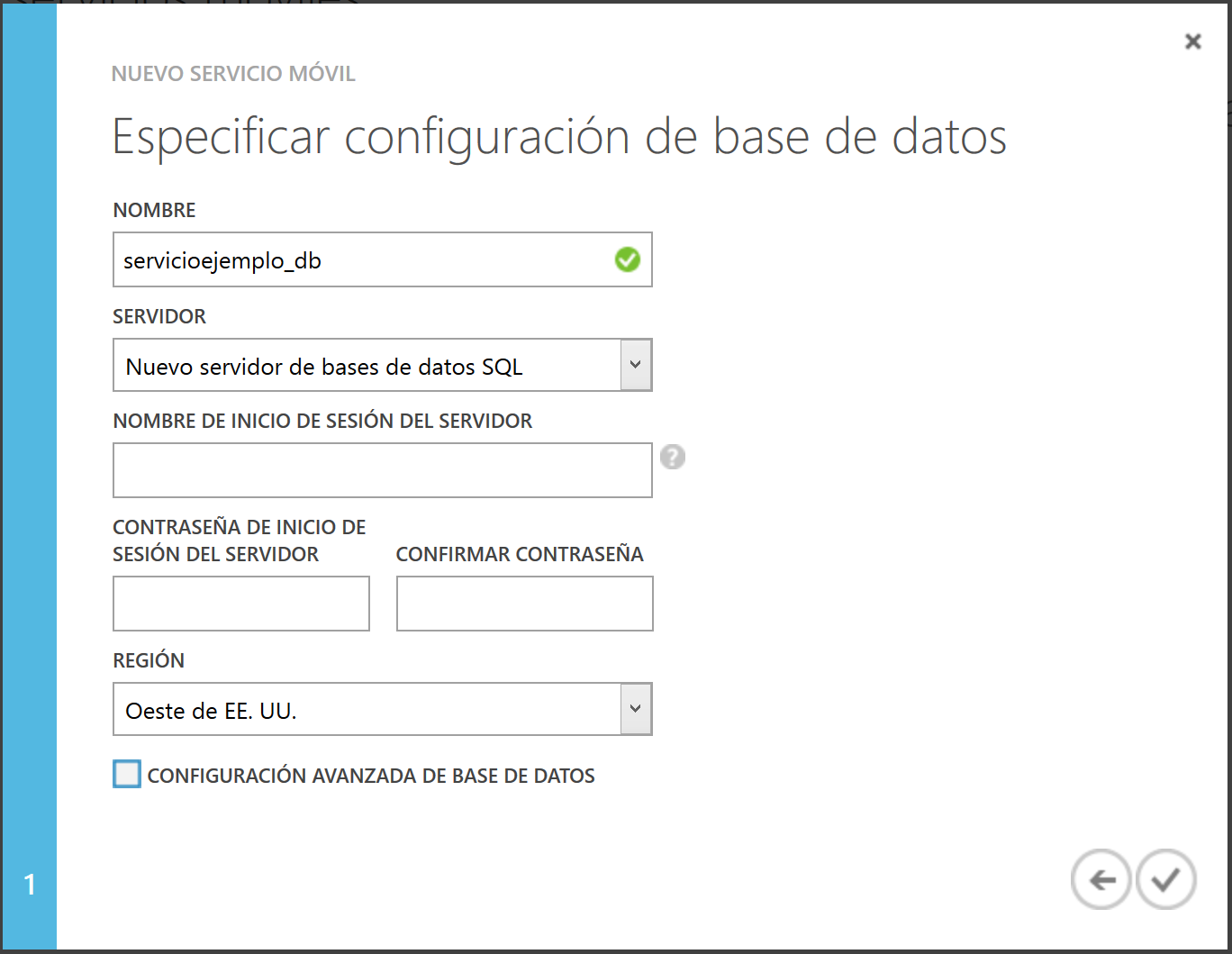 Dado que este es nuestro primer servicio, vamos a configurar también un nuevo servidor de base de datos (podemos elegir un servidor de base de datos, e incluso una base de datos que hayamos creado previamente, si fuera el caso):
