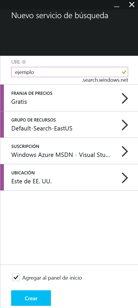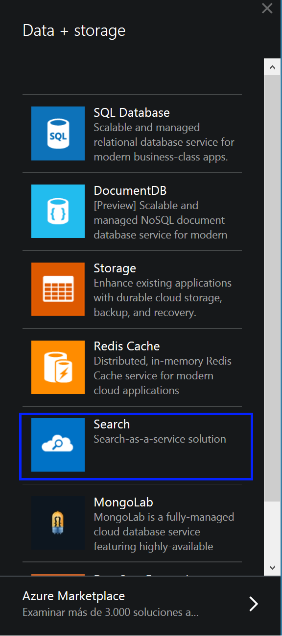 Azure Search implementa Elasticsearch como un servicio, por lo cual no deberemos preocuparnos de la infraestructura necesaria para correrlo, siendo Microsoft el responsable de proveernos escalabilidad, replicación y un SLA sobre el servicio.